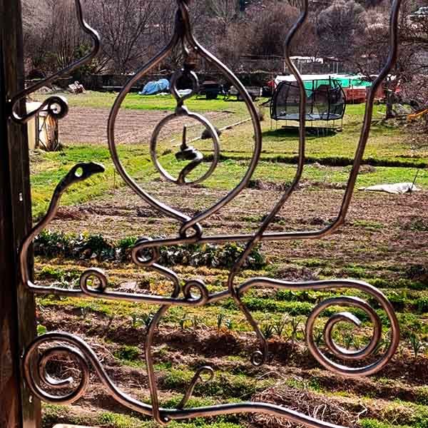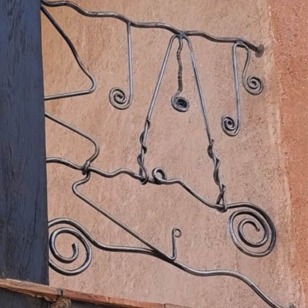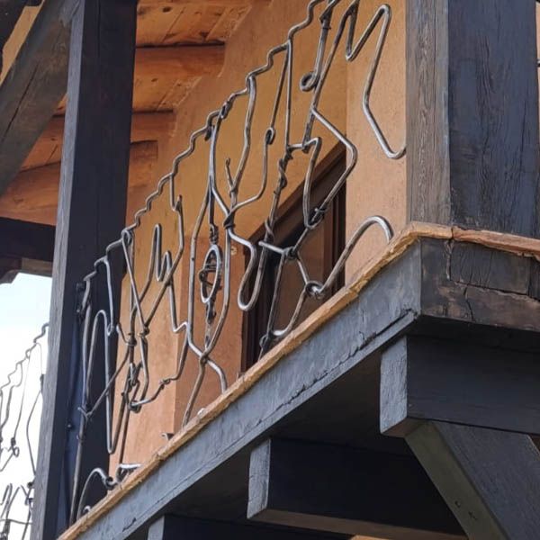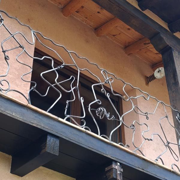 Cuatro Barandillas para una terraza de una preciosa casa en Albarracín, Teruel. La clienta quería unas barandillas de forja, pero con un estilo totalmente "deformado", irregular. Para mí no ha sido nada fácil pues soy muy de simetrías, de hecho no le pude dar un presupuesto al no saber lo que iba a hacer, ella sabía que le iba a costar, pero no cuanto y aún así confió en mí porque ya había visto mis trabajos en la web, se lo agradezco. El día que le mandé la foto de la primera barandilla yo estaba realmente "acojonado" que decimos en España, me había comprometido que si no le gustaba no seguíamos adelante con el encargo...LE ENCANTÓ, que alivio y alegría sentí. De ahí en adelante continué con seguridad y confianza. Para mí un gustazo un trabajo de sólo forja tradicional, FRAGUA, YUNQUE Y MARTILLO, por lo que me metí en este mundo y que pocas veces puedo desarrollar al 100% en una obra.